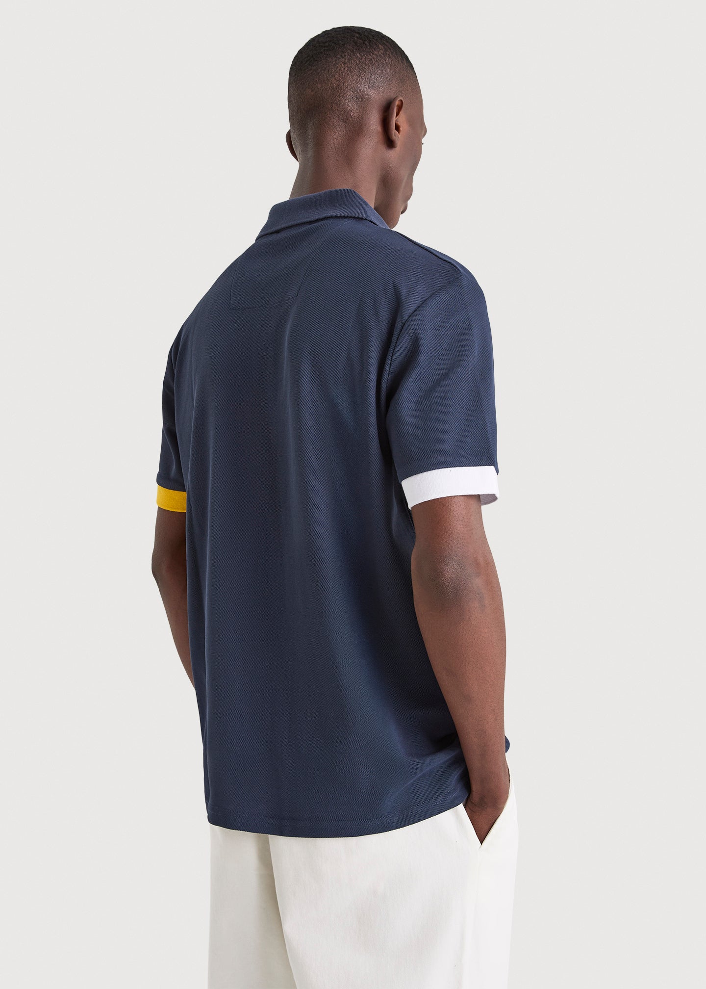 - Contrast collar and cuff detailing